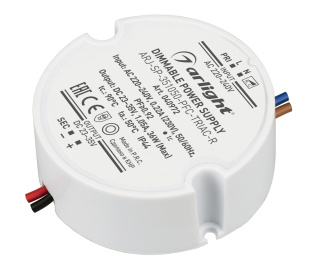 Диммируемый источник тока по стандарту TRIAC серии ARJ-INS с гальванической развязкой предназначен для питания различных типов светильников и светодиодов. Высокая стабильность выходного тока и низкий коэффициент пульсаций обеспечивают свечение без эффекта мерцания. Драйвер имеет скромные габариты, благодаря съемным крышкам, и может встраиваться в корпус светильника. Наличие DIP-переключателя на корпусе позволяет задать необходимые выходные параметры для нагрузки. Наилучшая совместимость с нагрузкой типа RC (задний фронт).