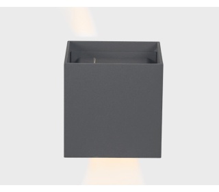 черном матовом металлическом корпусе. Имеет два источника света, преломление луча проходит через специальные оптические линзы, создавая эффектный узкий луч с нижним ореолом, светящим в двух противоположных направлениях. Идеально подойдет для подсветки стен. Светильник имеет высокую герметичность и может быть использован вне помещений, для подсветки и декора фасадов зданий.
