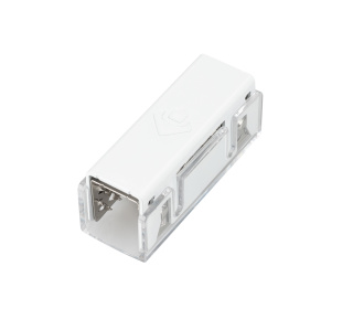 Герметичный двусторонний коннектор питания для герметичной ленты серии MOONLIGHT, с сечением 12х13 мм обеспечивает простое и надежное подключение без пайки. Коннектор сделан из белого пластика и имеет габариты 48x13x20 мм.