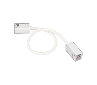 Герметичный коннектор питания для гибкого неона MOONLIGHT, сечение 17х12мм, цвет белый. Вертикальный вывод провода. Подключение питания без пайки, IP54, длина провода питания 500мм.