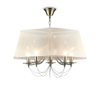 Нарядные и стильные светильники – прекрасное решение для интерьеров в современном стиле. Металлическая арматура окрашена в бронзовый цвет, плафоны из матового стекла в виде свечек». Основание изделий и розетки украшены объемным орнаментом. Также светильники дополнены подвесками.»
