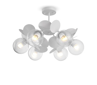 Металлическая арматура, оттенки – черный, белый. Плафоны-споты перемеща ются по кольцу, вращаются на 340° по горизонтали и 90° по вертикали. LED- модуль, акриловый рассеиватель.