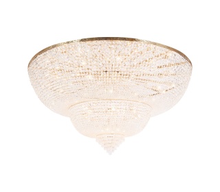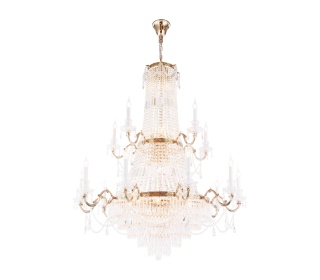 Арматура из металла, цвет – античное золото. Декор металлических элементов – инкрустированный цветочный орнамент. Многоярусные хрустальные подвески скрывают лампы. Часть моделей имеет открытые источники света в виде свечей.