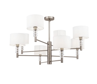 Материал арматуры – металл, цвет – никель. Абажуры из текстиля, нанесенного на ПВХ. Цвет абажуров – серый. Декор — граненые кристаллы.