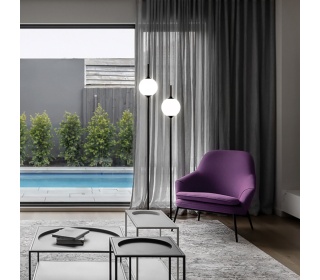 Металлическая арматура, цвет — золото, хром. Микс плафонов округлых и вытянутых форм из белого матового и прозрачного стекла с сетчатым и с линейным повторяющимся рельефным рисунком. Регулируемая высота подвесных моделей, провод — 3 метра. LED-источник света, цветовая температура 3000К.