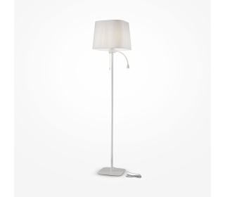 Металлическая арматура в белом и черном цвете. Материал абажура – текстиль, нанесенный на ПВХ, оттенки – белый и черный. LED-элемент для локальной под светки расширяет функционал модели.
