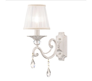 Металлическая арматура, оттенки – латунь, белый с золотом. Модели с открытыми источниками света и с абажурами. Абажуры из органзы, оттенки – бежевый, белый. Закрученный по спирали декор центральной оси. Подвески из кристаллов. — Высота люстр регулируется. Источник света — лампа с цоколем Е14.