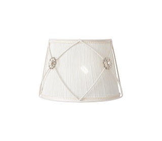 Металлическая арматура в цвете античной бронзы. Белые абажуры из органзы изготовлены в технике намотки, декорированы тесьмой. Декор – граненые кри- сталлы. Крепление 2 в 1 – монтаж с цепью и без нее. Регулируемая высота подвесных светильников. Источник света — лампа с цоколем Е14.