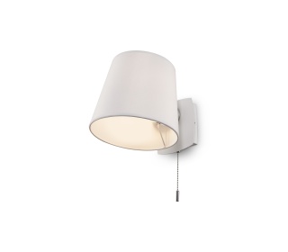 Металлическая арматура. Три цветовых решения: белый и хром, черный и хром, хром. Абажур из текстиля и льна, нанесенного на ПВХ. Цвета — бежевый, серый, белый. Источник света в подвесных моделях скрыт под матовым стеклом. Торшеры и настольные лампы с регулируемым кронштейном. Лампа с цоколем Е27.