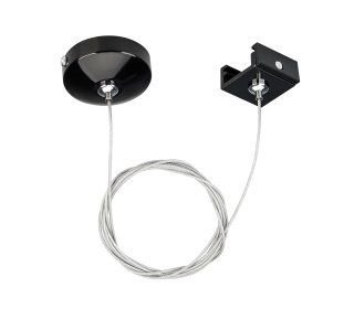 Тросовый подвес с пластиковой чашкой Ø36×47мм для треков 4TR. Длина троса 1.5 м. Цвет черный. Выдерживает вес максимум 15 кг. В комплекте трос, чаша, скоба и крюк. Совместим только с шинопроводом серии D3P.