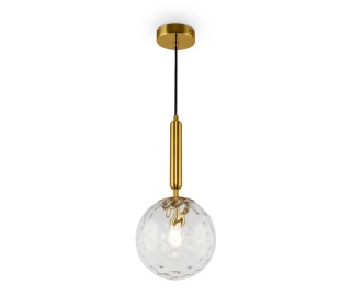 Материал арматуры – металл, цвет – латунь. Плафон – прозрачное глянцевое стекло. Трендовая сферическая форма. Энергоэффективные LED-источники обеспечивают равномерный яркий свет.