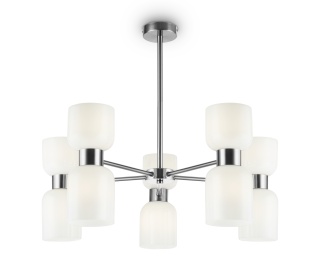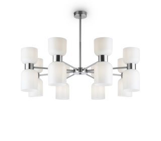Арматура из металла. Оттенки – хром и латунь. Стеклянные плафоны в двух цветовых решениях: белый глянец и хром с зеркальным эффектом. Оригинальная форма плафонов «песочные часы», двунаправленный световой поток. Широкий ассортимент. Источник света – лампа с цоколем E27.