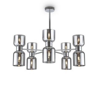 Арматура из металла. Оттенки – хром и латунь. Стеклянные плафоны в двух цветовых решениях: белый глянец и хром с зеркальным эффектом. Оригинальная форма плафонов «песочные часы», двунаправленный световой поток. Широкий ассортимент. Источник света – лампа с цоколем E27.
