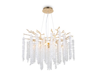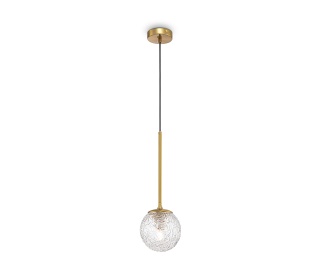 Чаша крепления и элементы корпуса выполнены из металла, цвета — черный и золотой. Плафон-сфера из белого матового стекла. Специальный грузик- противовес позволяет реглуировать высоту светильника. Универсальный дизайн для пространств любых габаритов. Источник света внутри плафона — лампа с цоколем Е27.