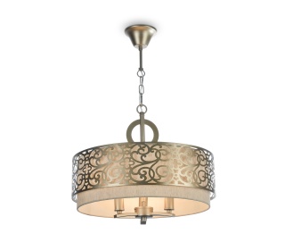 Арматура из металла, цвет – золото. Абажур – белый текстиль на ПВХ. Декор – пальмовая ветвь из листового металла. Рассеиватель фиксируется декоративным наконечником. Высота люстр регулируется.