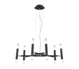 Металлическая арматура в матовом черном цвете. Цилиндрические плафоны вра щаются на 340° по горизонтали и 90° по вертикали. Возможность видоизменять дизайн светильника. Рассеиватель из матового стекла.