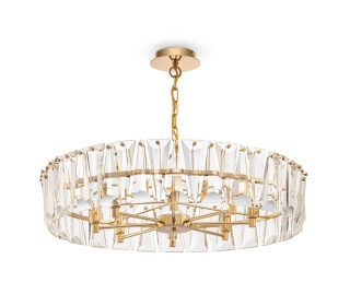 Материал арматуры – металл, оттенки – хром и золото. Декор – массивные крис таллы сложной огранки. Высота подвесных моделей регулируется длиной цепи. Источник света — лампа с цоколем Е14.