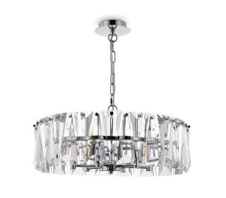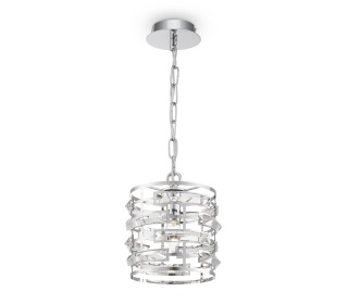 Арматура из нержавеющей стали, цвет арматуры – хром. Металлический каркас абажура декорирован прозрачным хрусталем. Высота подвесных моделей регу лируется.