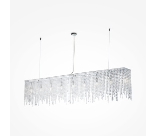 Металлическая арматура, цвет – хром. Каркас абажура – металл, декор – прозрач ный хрусталь. Потолочные модели с рассеивателем из матового стекла. Высота подвесных светильников регулируется.