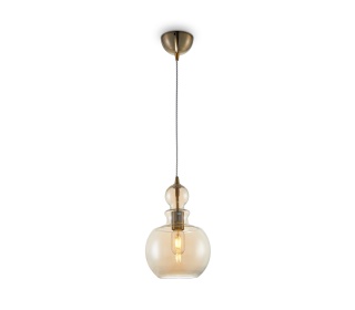 Арматура из металла, оттенок – бронза. Плафон из выдувного стекла в янтарном цвете. Витой провод в текстильной оплетке. Винтажная форма