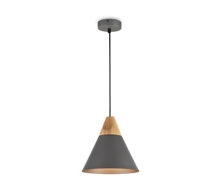 Арматура и плафон из металла в двух оттенках: белый и серый. Декоративный элемент из бука. Дерево покрыто бесцветным лаком. Актуальная скандинавская эстетика. Регулируемая высота. Источник света — лапма с цоколем Е27.