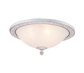 Материал арматуры – металл, оттенки – никель, золото. Плафон – прозрачное фактурное стекло. Традиционная форма античной чаши.