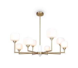 Металлическая арматура, цвет — золото. Мотивы ювелирного искусства в дизайне. Изящные цепочки на корпусе светильника создают переливы бликов. LED источник света. Цветовая температура — 3000К. Регулируемая высота подвесного светильника.