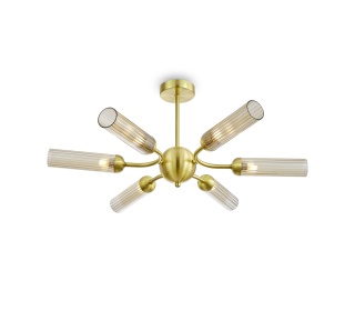 Металлическое основание, цвет — черный, золотой. Плафон-полусфера из стекла в двух цветах: глянцевый дымчато-черный, белый матовый. Компактная высота — подходит для помещений с невысоким потолком. Источник света — лампа с цоколем Е27.