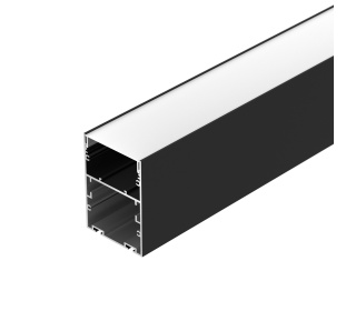 Алюминиевый подвесной профиль для светодиодных лент и линеек, с отсеком для блока питания (размер отсека 46х44 мм). Цвет — черный RAL9005 (порошковая окраска). Габаритные размеры (L×W×H): 2000x60x85 мм. Ширина площадки для ленты 24 мм. Экраны, заглушки и другие аксессуары приобретаются отдельно. Цена за 1 метр.