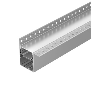 Встраиваемый профиль со скрытым фланцем под строительную отделку из анодированного алюминия для основного освещения и контурной подсветки.