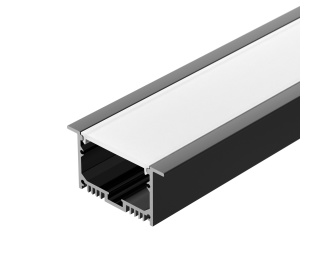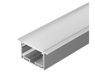 Встраиваемый профиль с накладным фланцем из анодированного алюминия в комплекте с матовым рассеивателем со светопропусканием 67% идеально подходит для основного освещения и контурной подсветки.