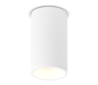 Белый светильник цилиндрической формы создаёт точечное освещение интерьера
