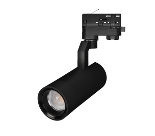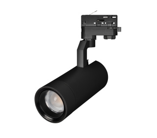 Светильник подвесной для треков/шин 4 провода, 30Вт. Цвет свечения ДНЕВНОЙ 4000K, световой поток 2700лм, регулируемый угол 20-60°, CRI>90. Корпус круглый, металл, цвет черный, IP20. Размеры DxL Ø80×181мм. Входное напряжение AC220-240V, мощность 30Вт. Драйвер встроенный (30-43V, 720mA).