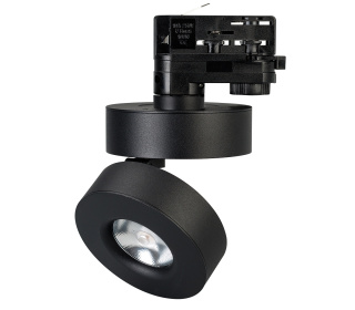 Светильник подвесной откидной для треков/шин 4 провода, 12Вт. Цвет свечения ТЕПЛЫЙ 3000K, световой поток 770лм, CRI>90, угол свечения 24°, угол поворота 355°, угол наклона 90°. Корпус круглый, металл, цвет черный, IP40. Размер DxH Ø100×105мм. Питание AC 220-240V, 12Вт, драйвер встроенный (DC 300mA, 25-42V).