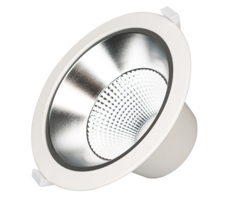 Встраиваемый светильник «Даунлайт» 35Вт. Цвет свечения ТЕПЛЫЙ 3000К. Световой поток 2870лм, угол 50°, CRI>80. Белый корпус. Питание AC220-240V. Габариты: Ø232х118мм, врезное отверстие Ø195-210мм. Драйвер в комплекте (26.5-44.5V, 900mA).