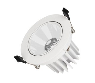 Встраиваемый поворотный светильник даунлайт. Мощность 8.4 Вт, св. поток 800 лм, 95 лм/Вт, дневной 4000 K, CRI>90, UGR<16, угол 32°, напряжение питания 230 В. Белый круглый корпус из алюминия, степень защиты IP20. Размер: диаметр 82 мм, высота 51 мм. Монтаж встраиваемый, установочное отверстие: диаметр 75 мм. Драйвер 21-42 В, 200 мА, пульсация <2%.
