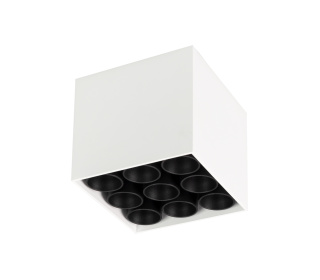 Накладной интерьерный светильник. Мощность 20 Вт, св. поток 1431 лм, 68 лм/Вт, теплый 3000 K, CRI>98, угол 30°, напряжение питания 230 В. Белый квадратный корпус из алюминия, степень защиты IP20. Размер: длина 95 мм, ширина 95 мм, высота 85 мм. Монтаж накладной. Драйвер 21-40 В, 600 мА, пульсация <5%.