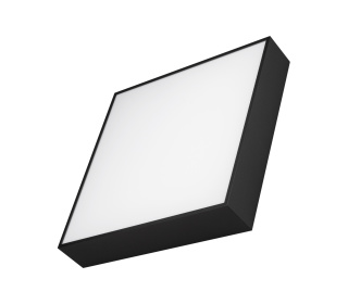 Накладной светильник. Мощность 30 Вт, св. поток 2000-2540 лм, 85 лм/Вт, дневной 4000 K, CRI>90, угол 120°, напряжение питания 230 В. Черный квадратный корпус из алюминия, экран PC, степень защиты IP40. Размер: длина 350 мм, ширина 350 мм, высота 64 мм. Монтаж накладной. Драйвер 27-42 В, 800 мА, пульсация <5%.