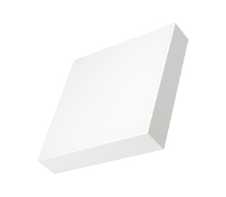 Накладной светильник. Мощность 30 Вт, св. поток 2000-2540 лм, 85 лм/Вт, дневной 4000 K, CRI>90, угол 120°, напряжение питания 230 В. Белый квадратный корпус из алюминия, экран PC, степень защиты IP40. Размер: длина 350 мм, ширина 350 мм, высота 64 мм. Монтаж накладной. Драйвер 27-42 В, 800 мА, пульсация <5%.