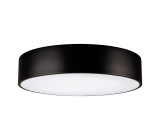 Накладной интерьерный светильник. Мощность 35 Вт, св. поток 2840 лм, 80 лм/Вт, теплый 3000 K, CRI>80, угол 100°, напряжение питания 230 В. Черный круглый корпус из алюминия, степень защиты IP20. Призматический акриловый рассеиватель. Размер: диаметр 500 мм, высота 100 мм. Монтаж накладной. Драйвер 30-42 В, 950 мА, пульсация <2%.