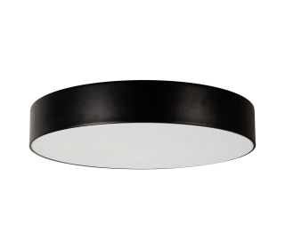 Накладной интерьерный светильник. Мощность 50 Вт, св. поток 4050 лм, 80 лм/Вт, дневной 4000 K, CRI>80, угол 100°, напряжение питания 230 В. Черный круглый корпус из алюминия, степень защиты IP20. Призматический акриловый рассеиватель. Размер: диаметр 600 мм, высота 100 мм. Монтаж накладной. Драйвер 28-42 В, 1200 мА, пульсация <2%.