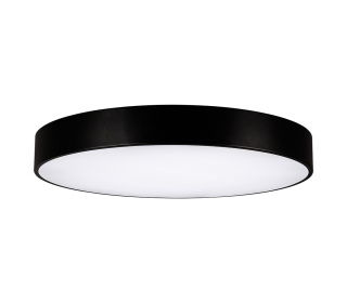 Накладной интерьерный светильник. Мощность 94 Вт, св. поток 7620 лм, 80 лм/Вт, дневной 4000 K, CRI>80, угол 100°, напряжение питания 230 В. Черный круглый корпус из алюминия, степень защиты IP20. Призматический акриловый рассеиватель. Размер: диаметр 800 мм, высота 100 мм. Монтаж накладной. Драйвер 28-42 В, 1200 мА (2 шт.), пульсация <2%.