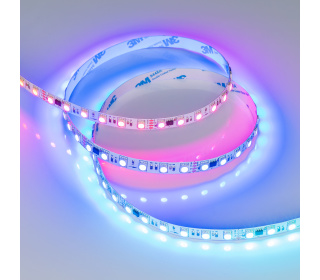 Светодиодная гибкая лента DMX-B60, открытая IP20, с интерфейсом DMX-512 (драйвер DMX SM16512PS). Светодиоды 5060, 60 шт/м (1 pixel = 6 LED), белая плата 10 мм, скотч 3М. Цвет RGB+4000K, цветопередача CRI>80, угол 120°. Питание 24 В, мощность 18 Вт/м (90 Вт на 5 м). Размеры 5000x10x2.1 мм. Мин. отрезок 100 мм, 6 светодиодов. Цена за 1 м.