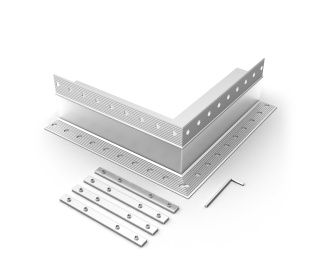 Внутренний прямой угол в сборе со скрытым фланцем под строительную отделку для соединения двух профилей SL-LINIA32-FANTOM-EDGE под прямым углом 90° в разных плоскостях в комплекте с матовым экраном и соединителями. Экран образует линию внутри угла. Применятся при изготовлении светильников сложной геометрии.