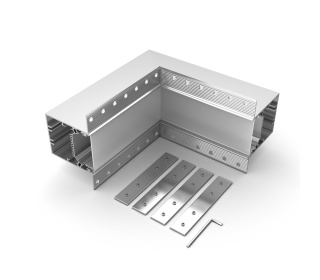Угол в сборе, для профиля SL-LINIA55-FANTOM-EDGE. Свечение наружу. В комплекте угол с экраном, соединители, винты, шестигранный ключ.